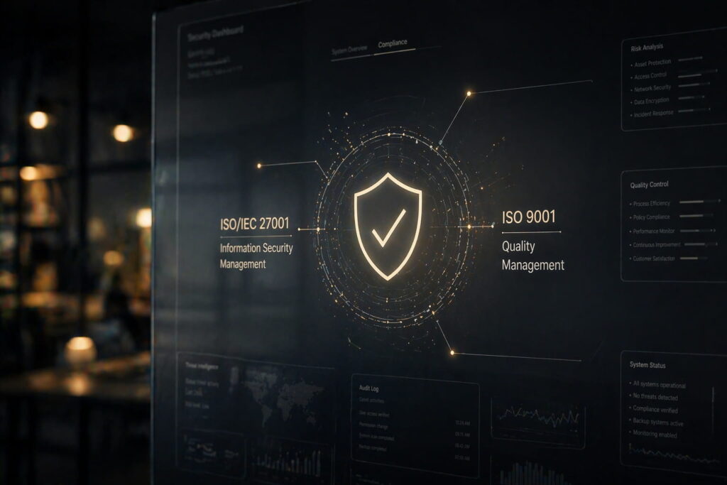 Infraestructura y procesos avalados por las certificaciones internacionales ISO/IEC 27001 y ISO 9001.